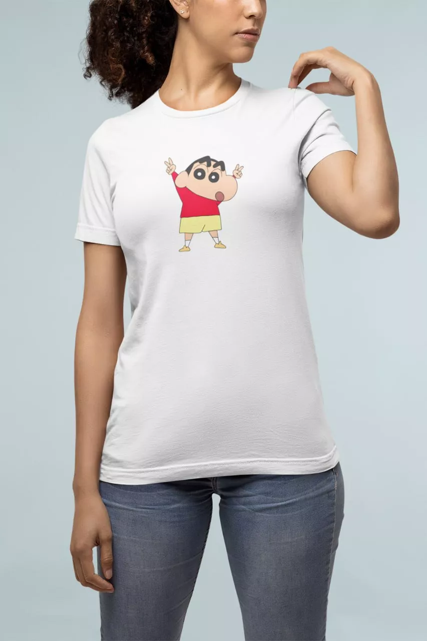 Shinchan Enjoying Women Half Sleeve T-Shirt photo photo photo photo photo